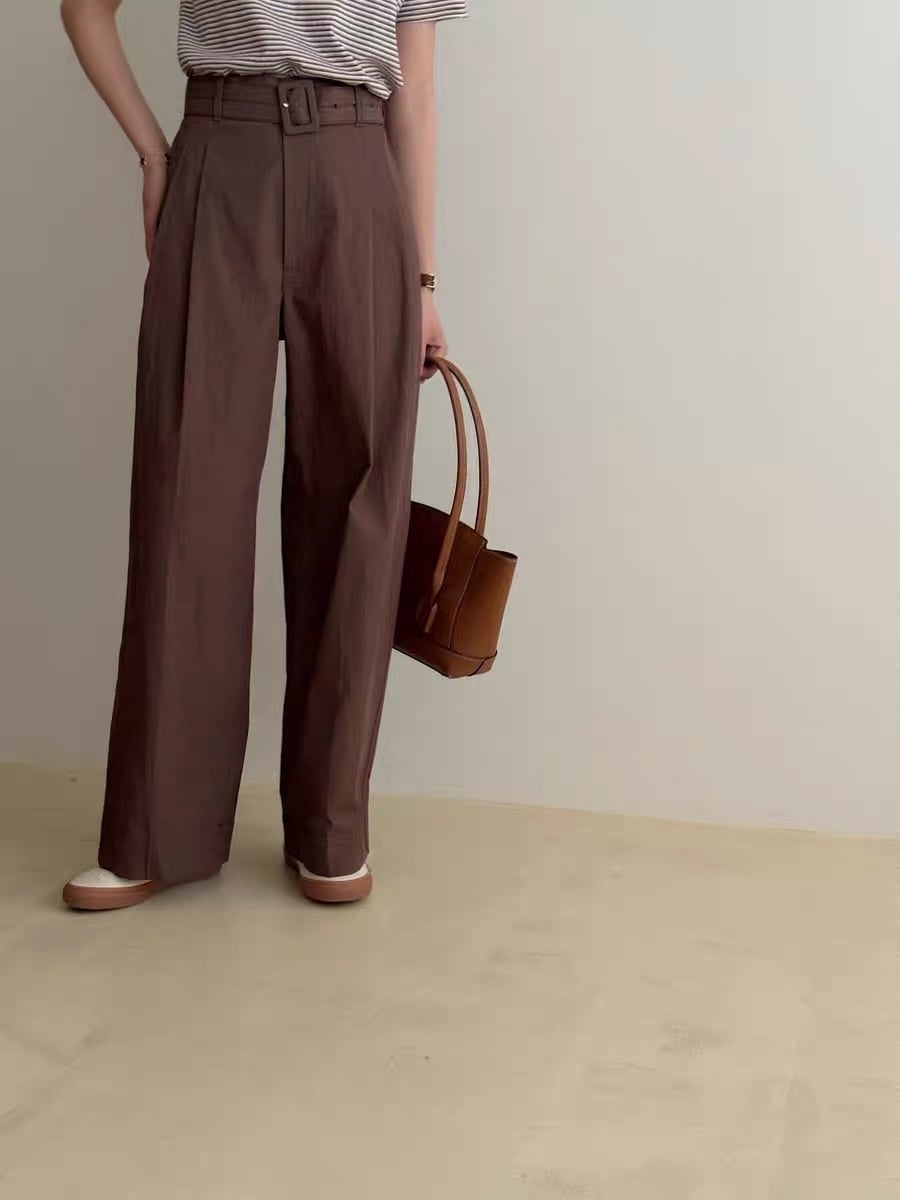 シンプルなデザインながら、付属のベルトがアクセントになりおしゃれ度をUPします。SサイズとMサイズの2サイズ展開で、どんな体型の方でもジャストフィットする着心地◎ブラウンとベージュの2色からお選びいただけるので、コーディネートに合わせてお好きな色合いをお選びください。素材にもこだわり、ストレッチ性があるので動きやすく快適な穿き心地です。お手持ちのトップスと合わせやすいシンプルなデザインは、毎日のコーディネートに大活躍間違いなし!このパンツがあなたのスタイルを引き立て、自信を持って歩かせてくれます。 ※洗濯の際は、ベルトを外して裏返しにしてから洗ってください。